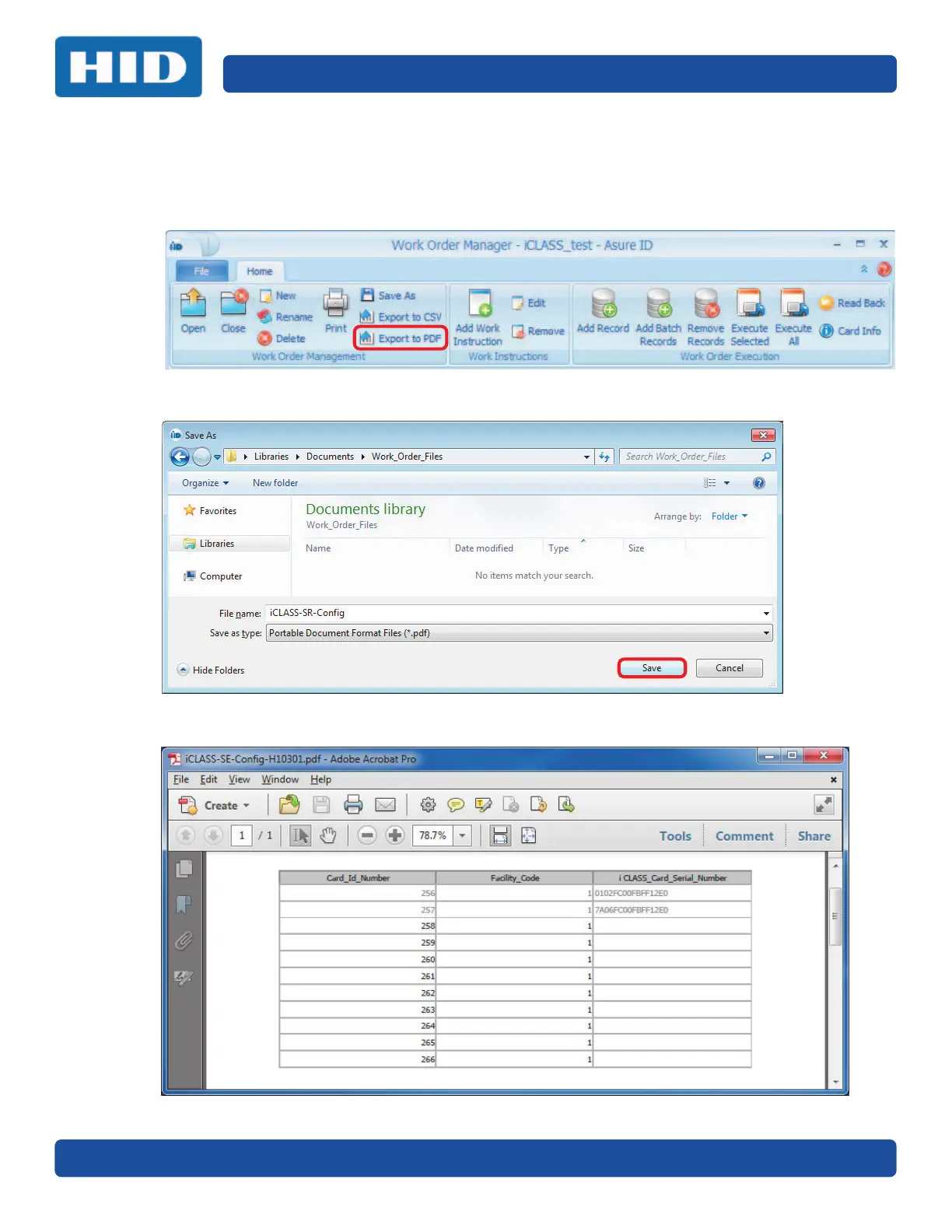 Work Order data can be exported to a Portable Document Format (PDF) file.