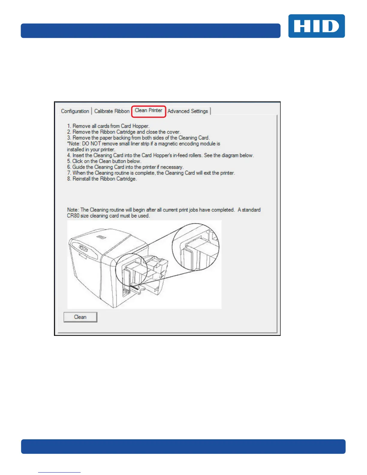 4.1.1.3 Clean Printer Tab