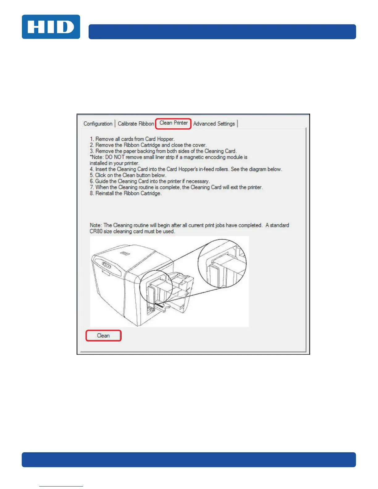 6. Select the Clean Printer tab.