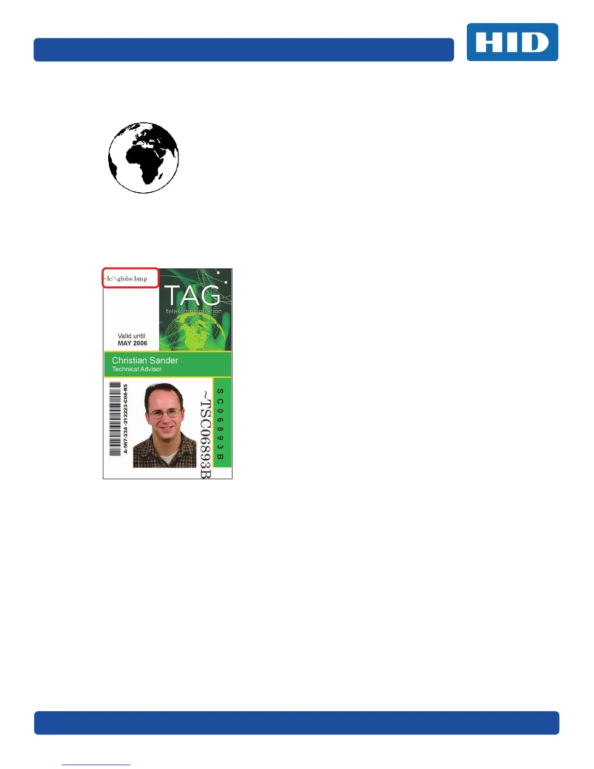 7. Printer will print the fluorescent BMP IMAGE at the ~I position on the card. Printer will print the