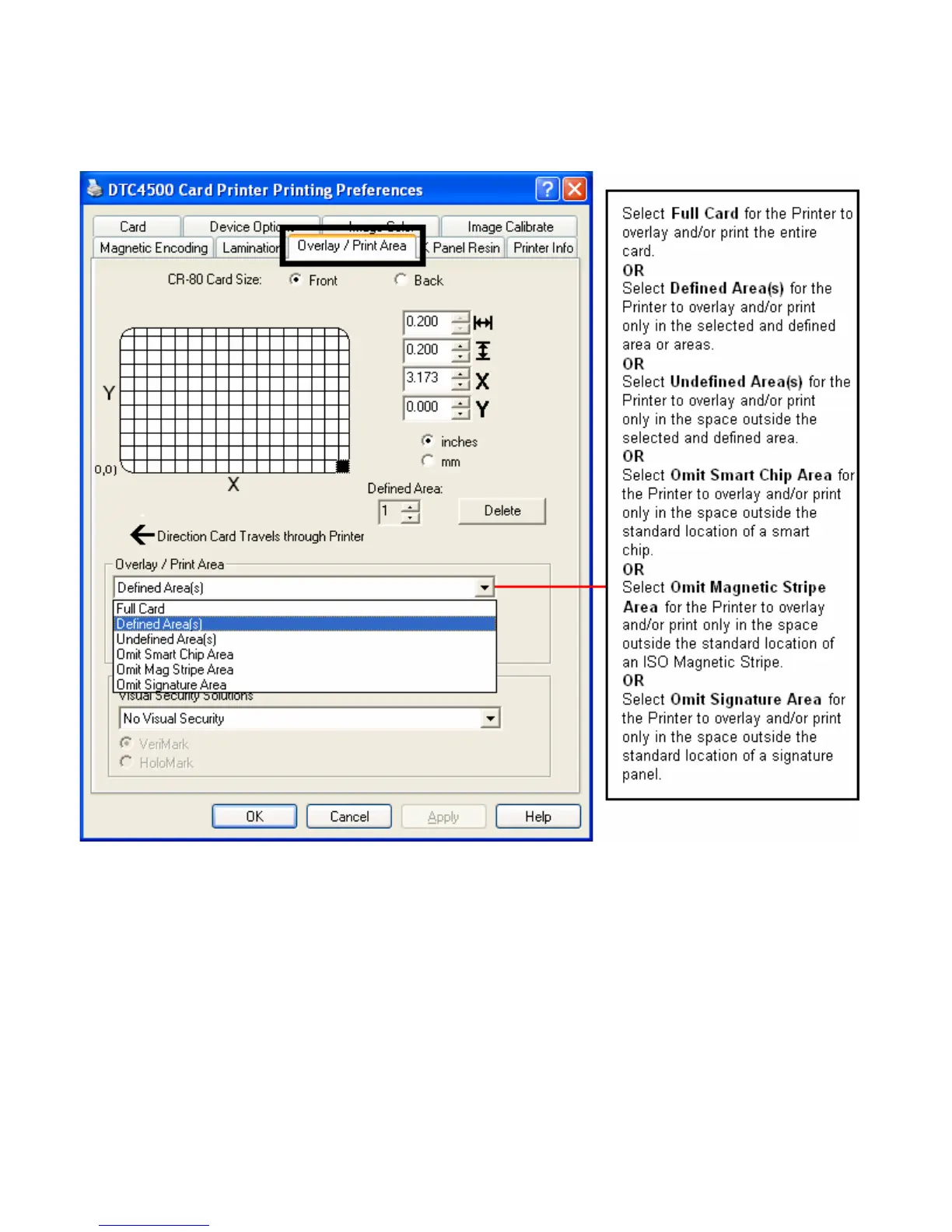 Using the Overlay / Print Area tab