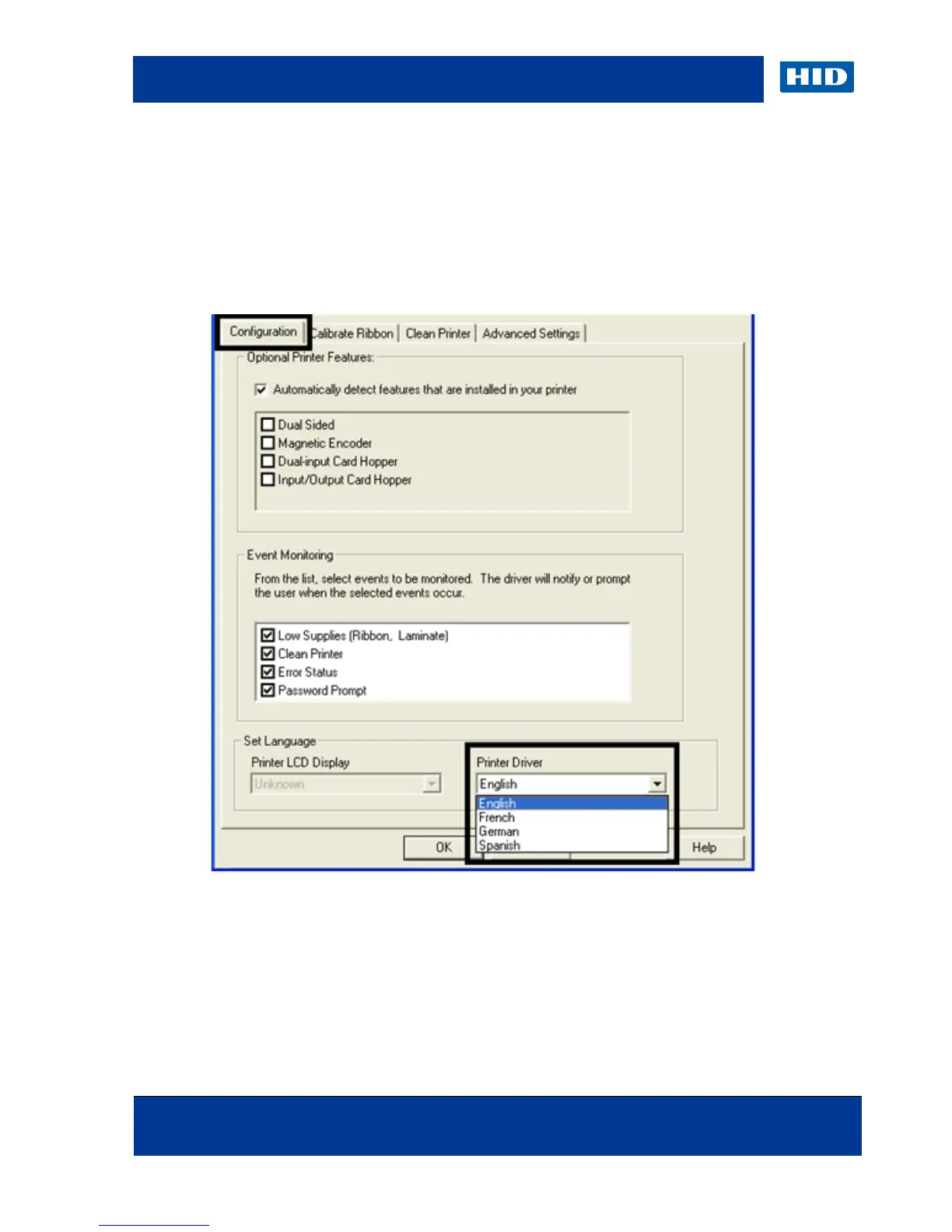 This option is used to show the currently installed Optional Printer Features, Event Monitoring,