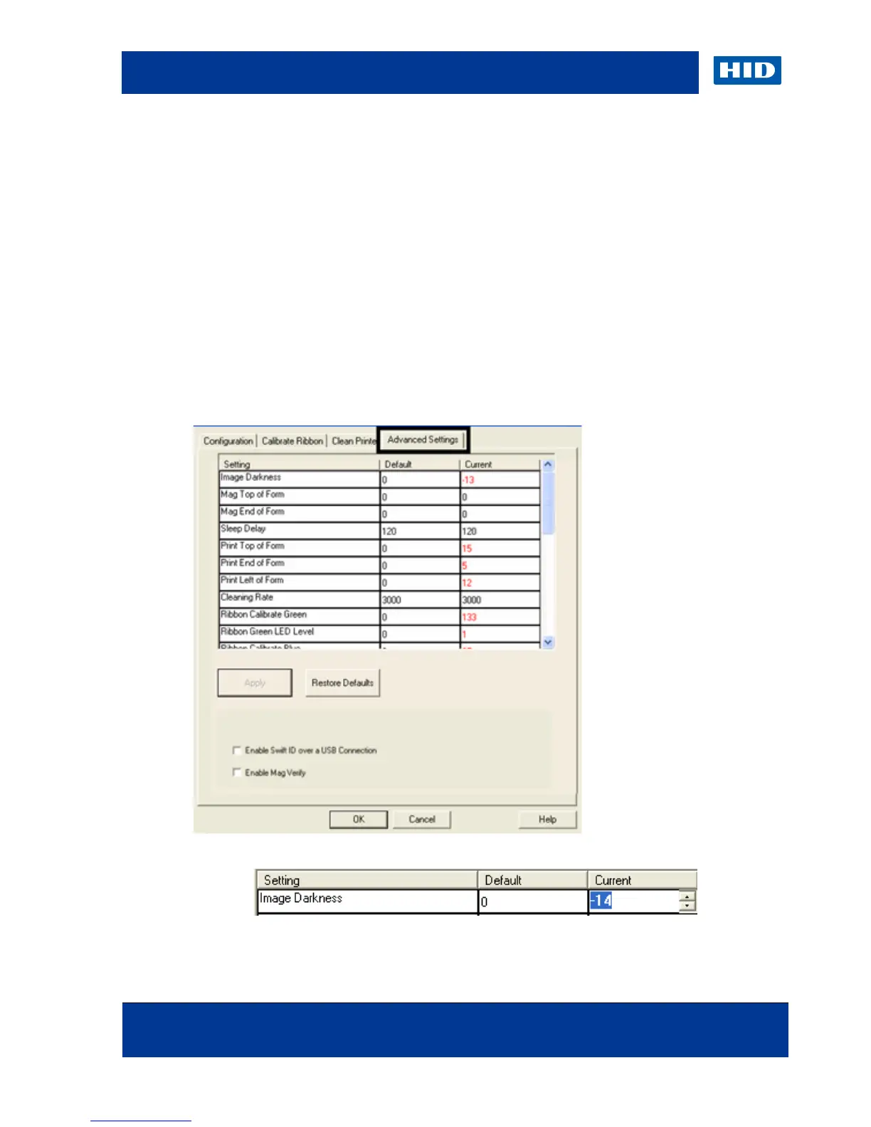Use the Advanced Settings tab for adjusting the internal Printer settings, which are