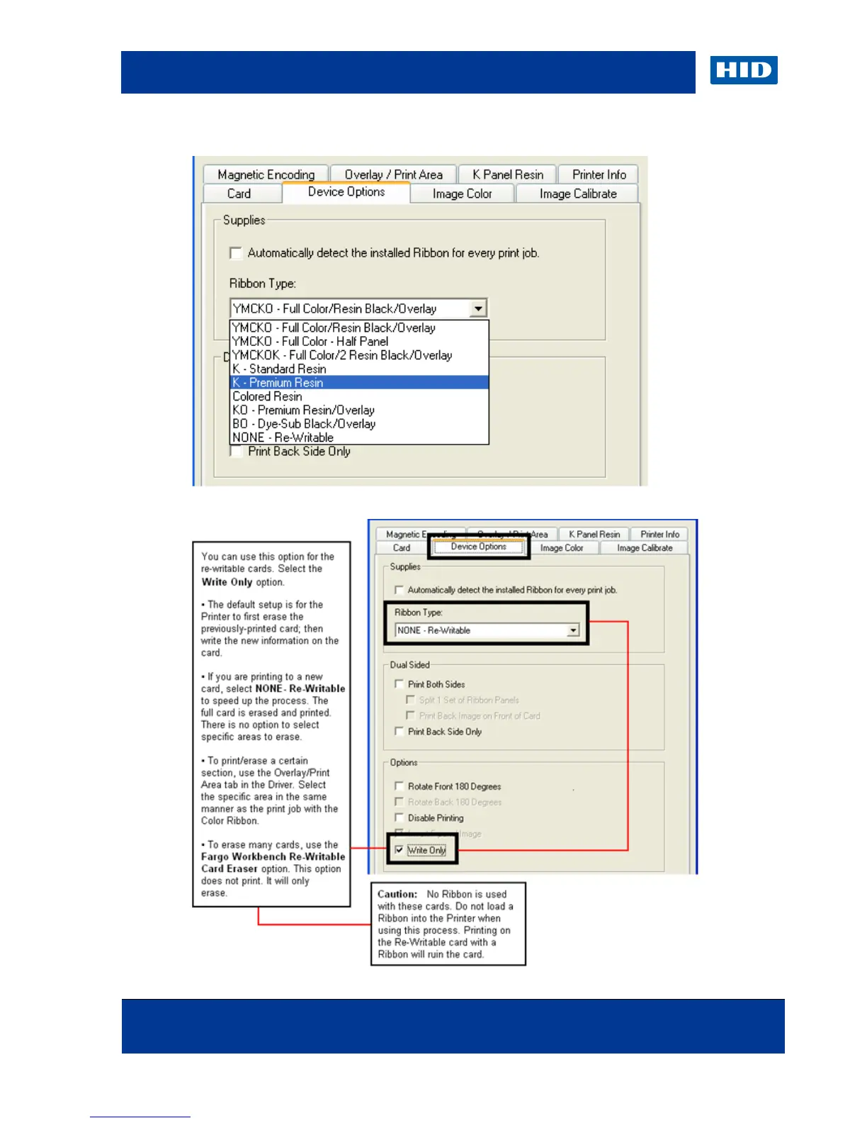 HID FARGO DTC4500e - 4.2.1 Ribbon Type dropdown