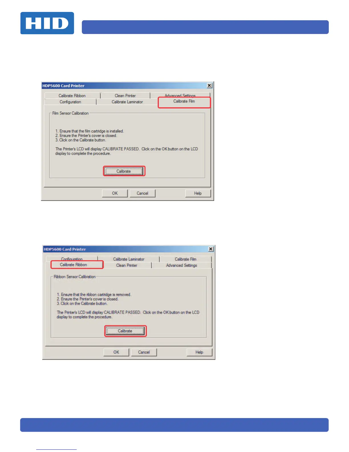 The Calibrate Film option sends the calibrate film command to printer. Follow the instructions on the