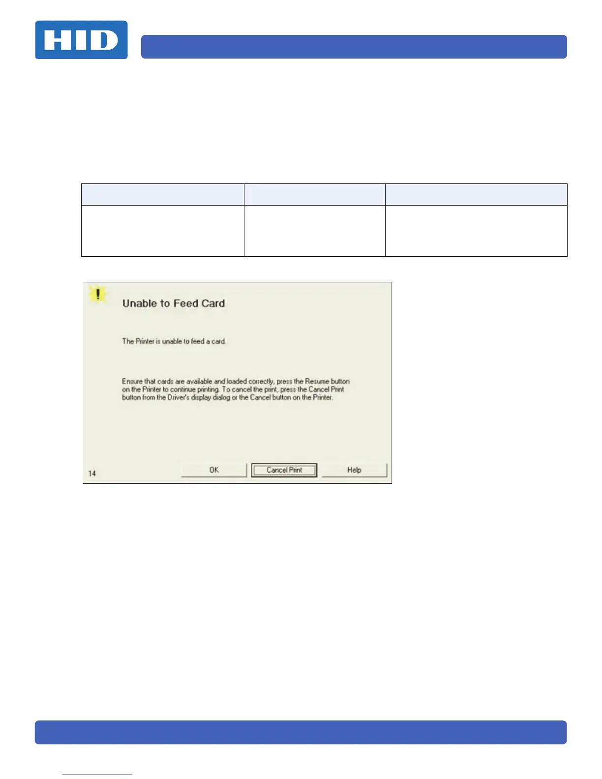 Unable to Feed Card