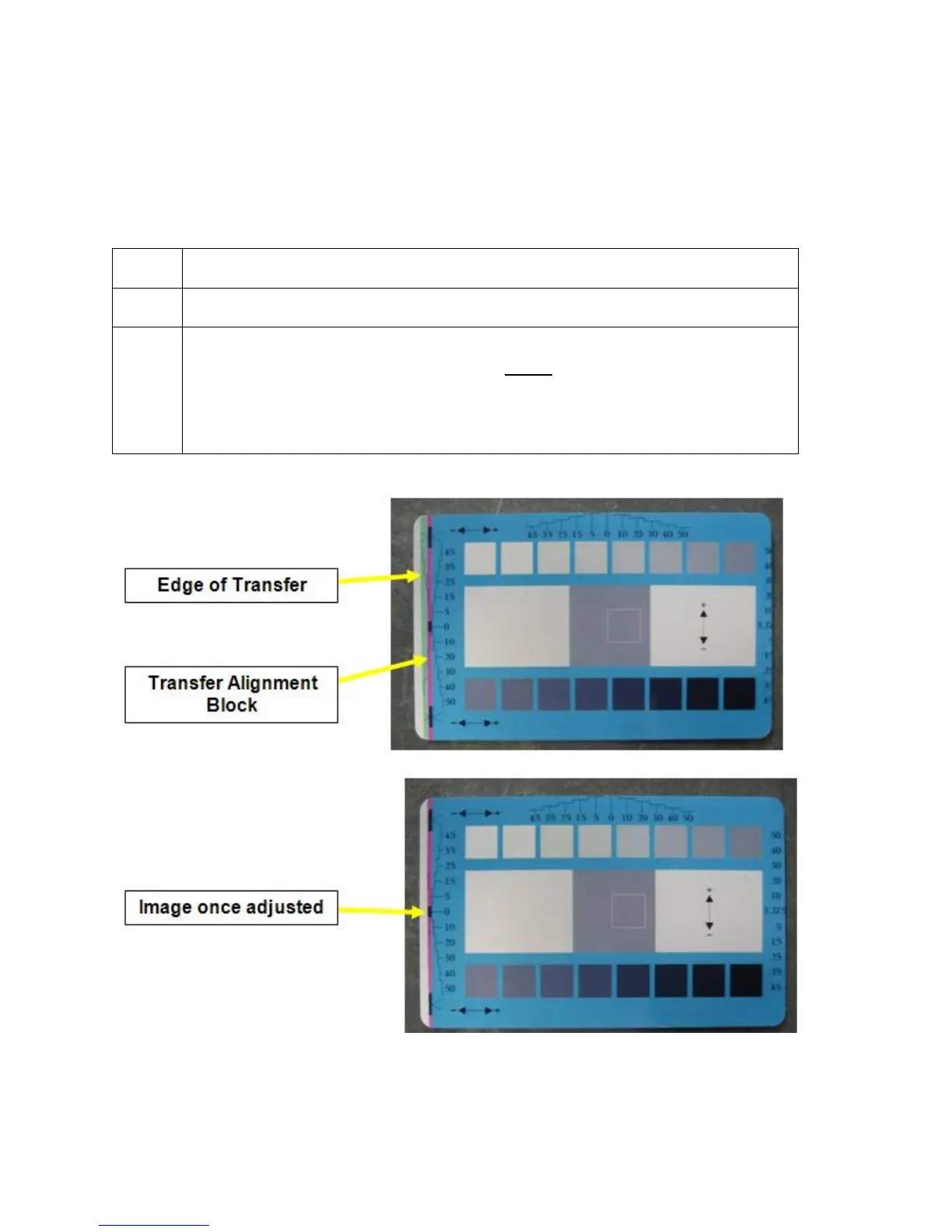 Print the alignment card self-test (The front edge should look like figure below).