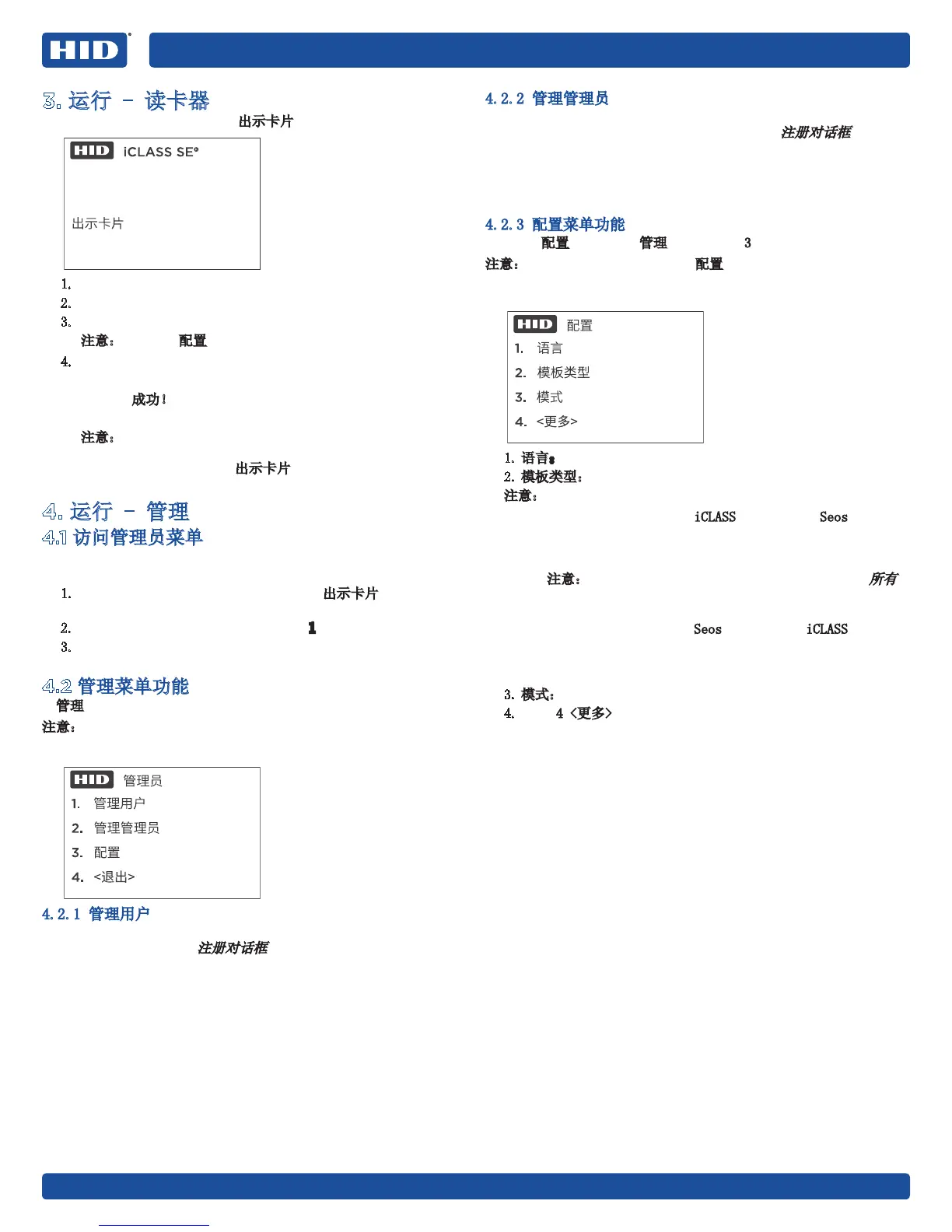 如果读卡器配置为“读卡器/注册”,但用户想访问管理模式,请完