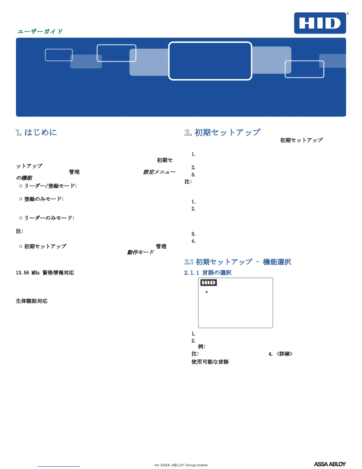 リーダーの電源を初めてオンにした際に初期セットアップ メニュ