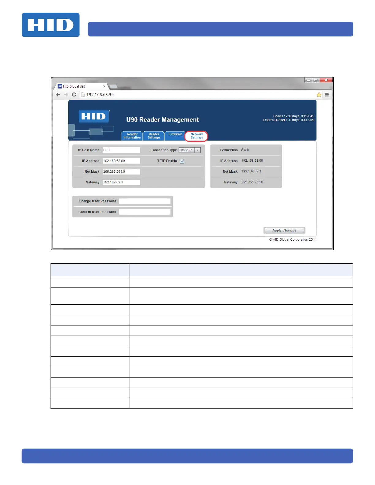 Net Mask Net Mask of the reader, used if DHCP is not enabled.