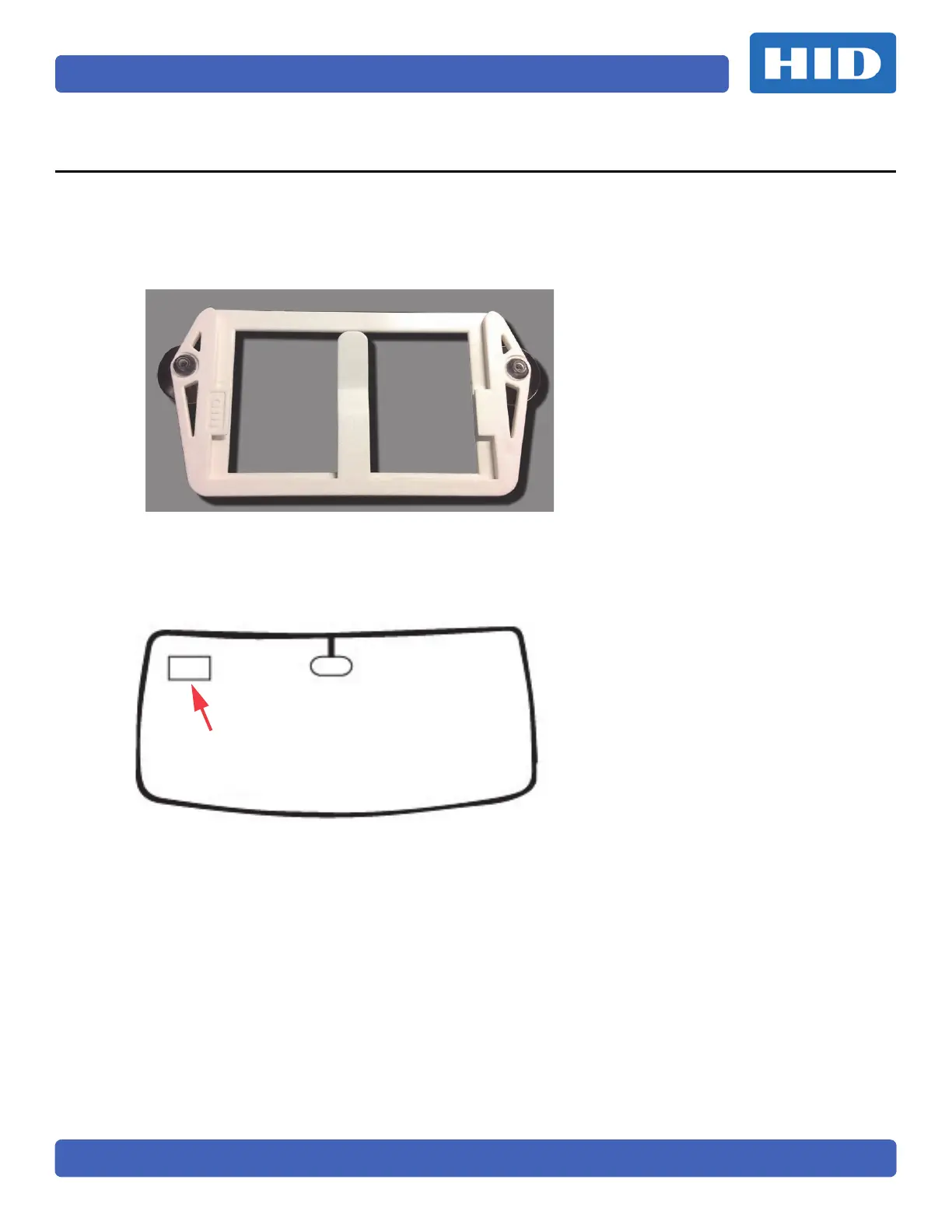Note: Place the Mount in the windshield location as seen in the graphic below, with a minimum of 2 inches