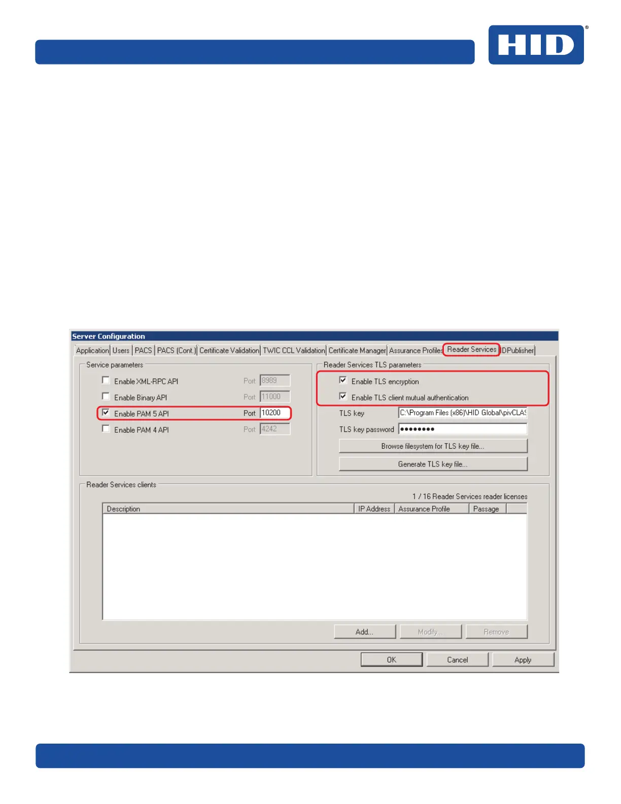 2. Select Reader Services tab and ensure the Enable PAM 5 API option is selected.
