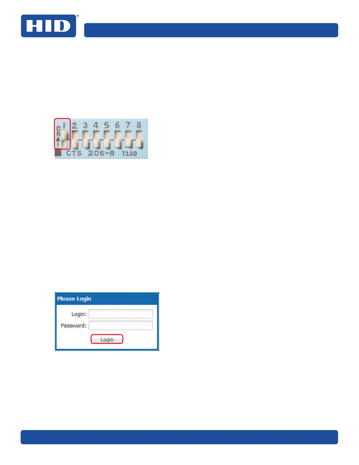 2. Set dip switch 1 on the PAM board to ON. PAM configuration mode is now enabled.