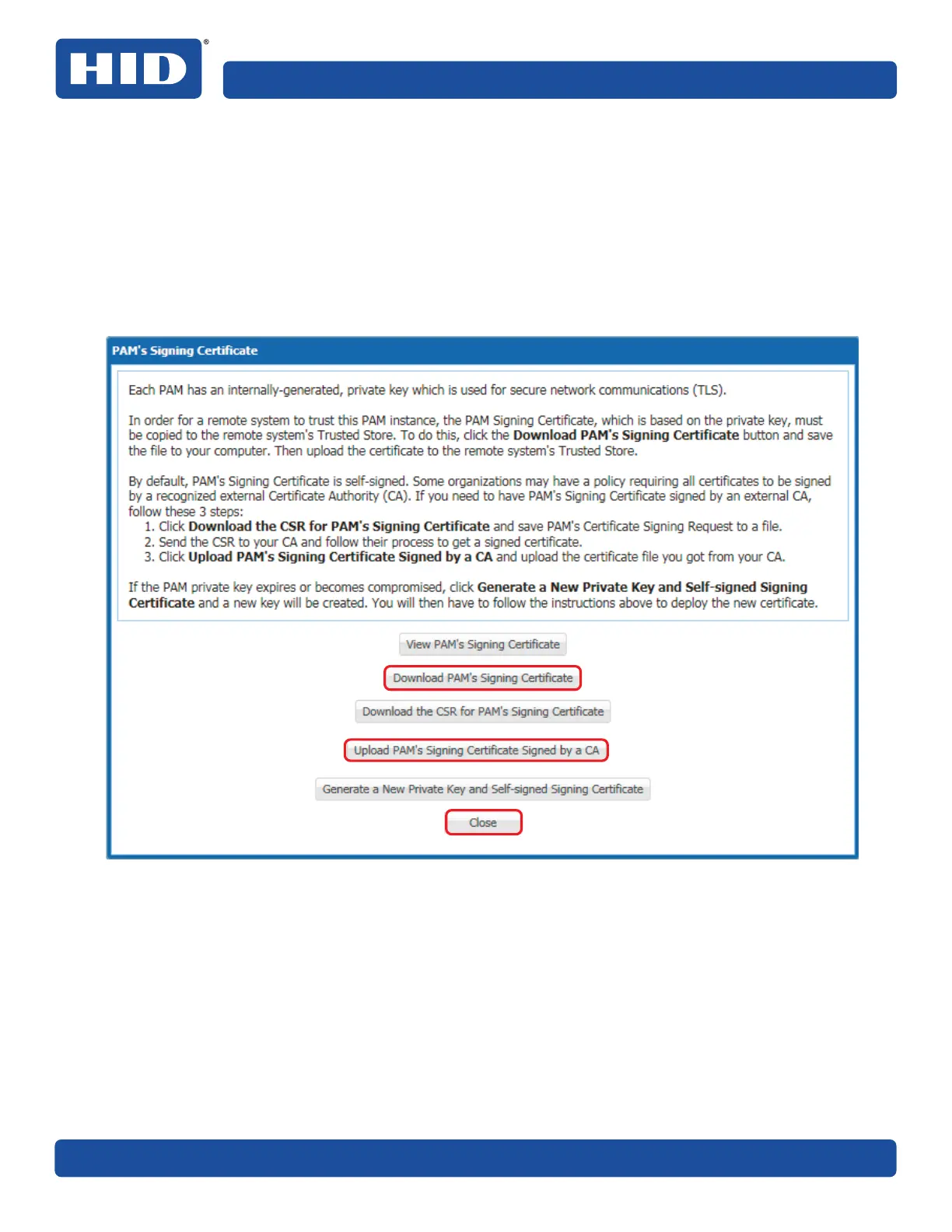 ႑ Follow the on-screen instructions to get the PAMs Signing Certificate signed by an external