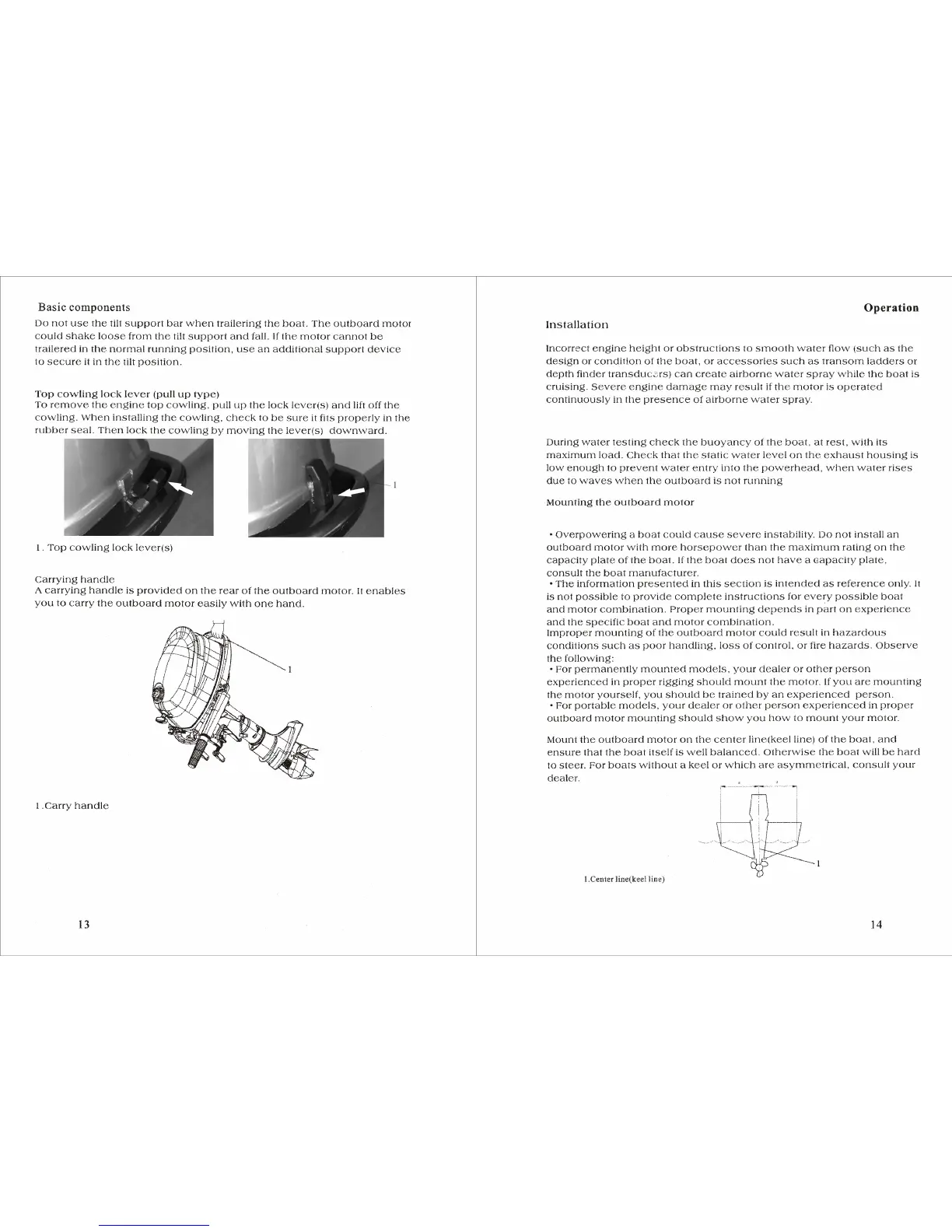 Hidea F5 - Operation; Top Cowling Lock Lever; Installation; Mounting the Outboard Motor