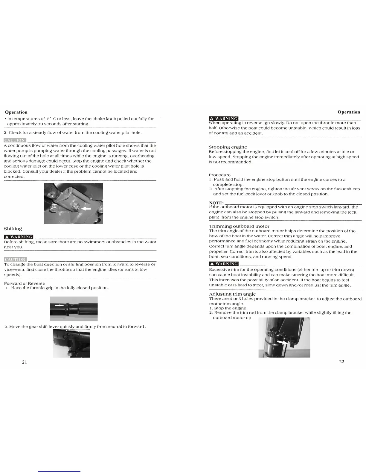 Hidea F5 - Shifting; Stopping Engine; Trimming Outboard Motor; Adjusting Trim Angle
