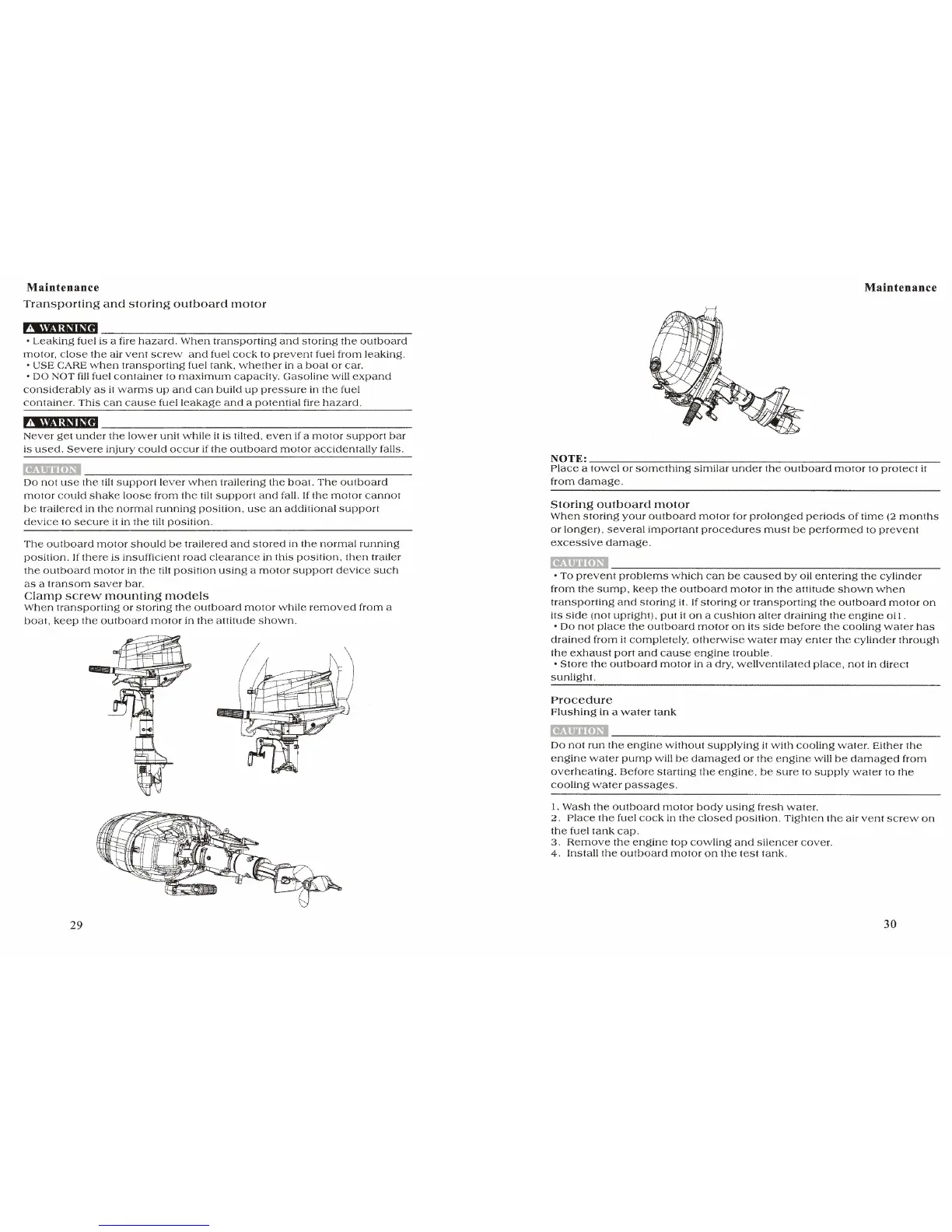 Hidea F5 - Transporting and Storing Outboard Motor; Clamp Screw Mounting Models; Storing Outboard Motor; Flushing in a Water Tank