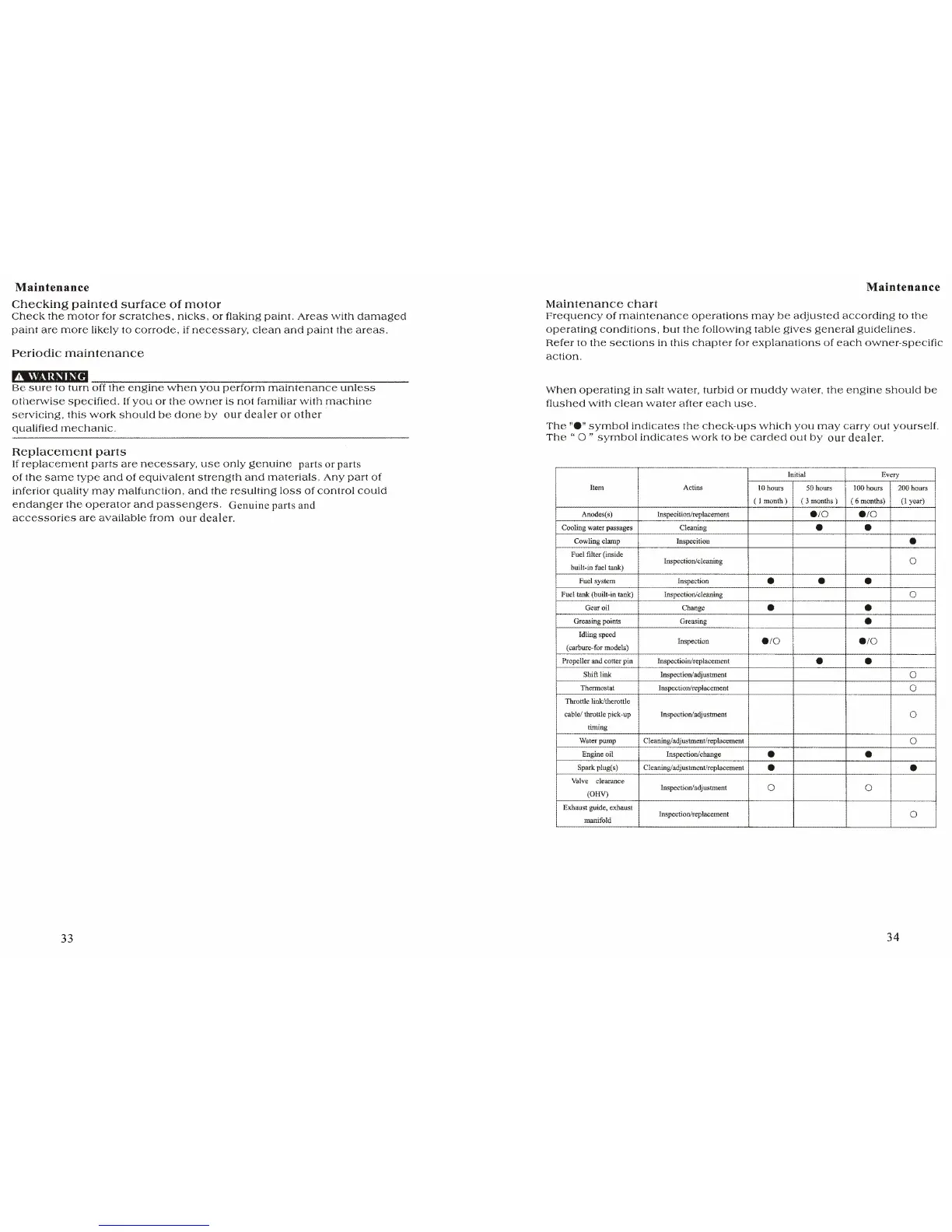 Hidea F5 - Maintenance Chart; Checking Painted Surface of Motor; Periodic Maintenance