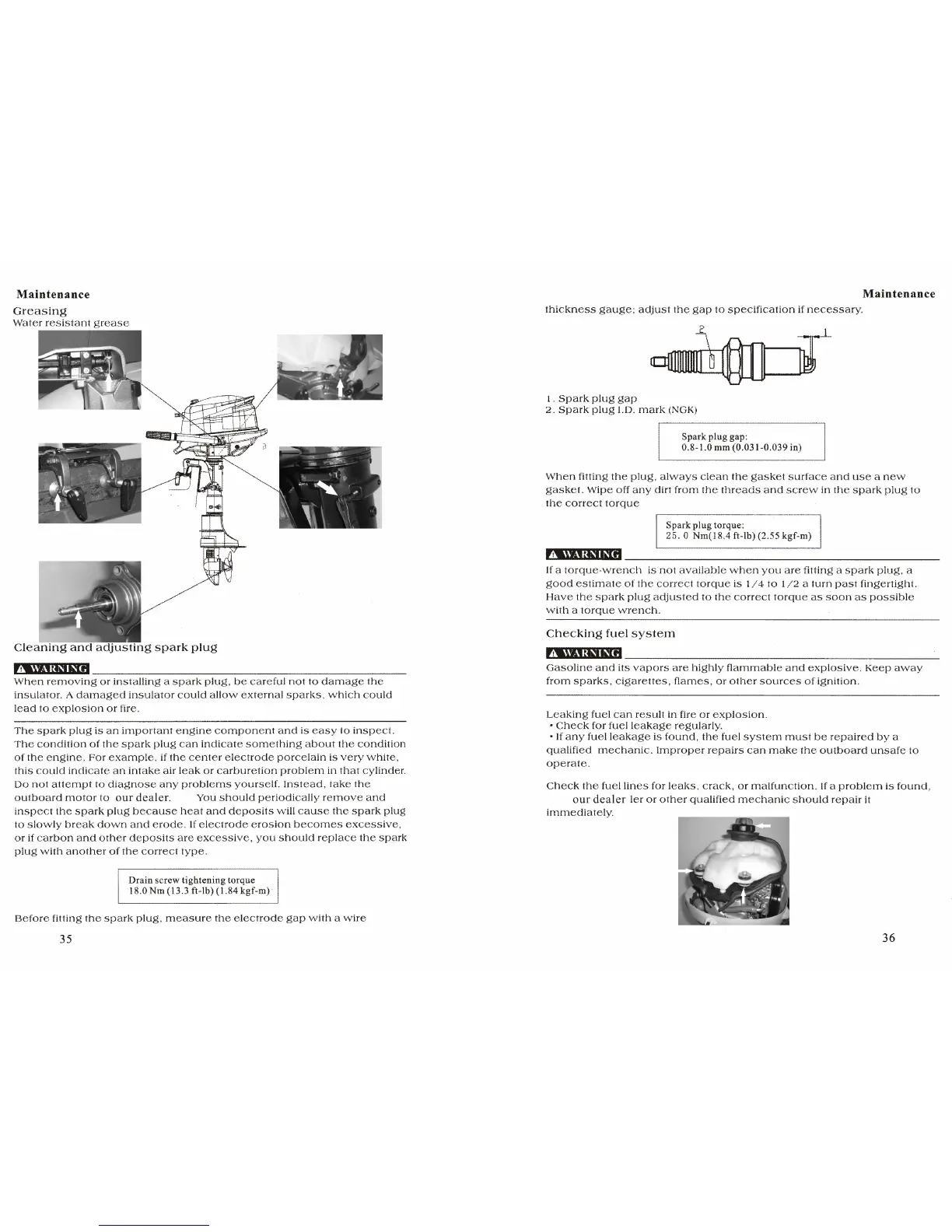 Hidea F5 - Greasing; Cleaning and Adjusting Spark Plug; Checking Fuel System