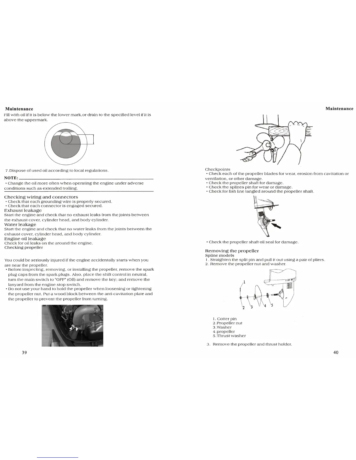 Hidea F5 - Checking Wiring and Connections; Exhaust Leakage; Water Leakage; Engine Oil Leakage