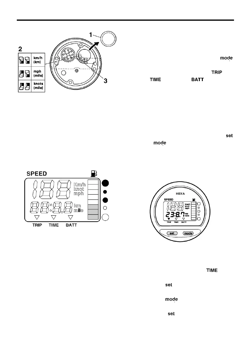 The display shows either the trip meter, the