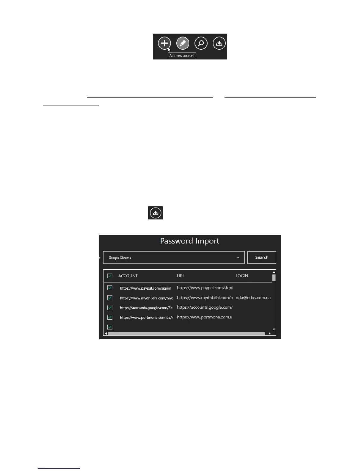 procedure can be launched by pressing in the Password Manager. You should choose a browser