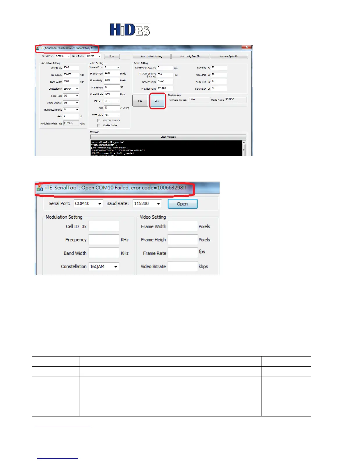 If it fails to open the COM port, it shows the following message on the caption bar.
