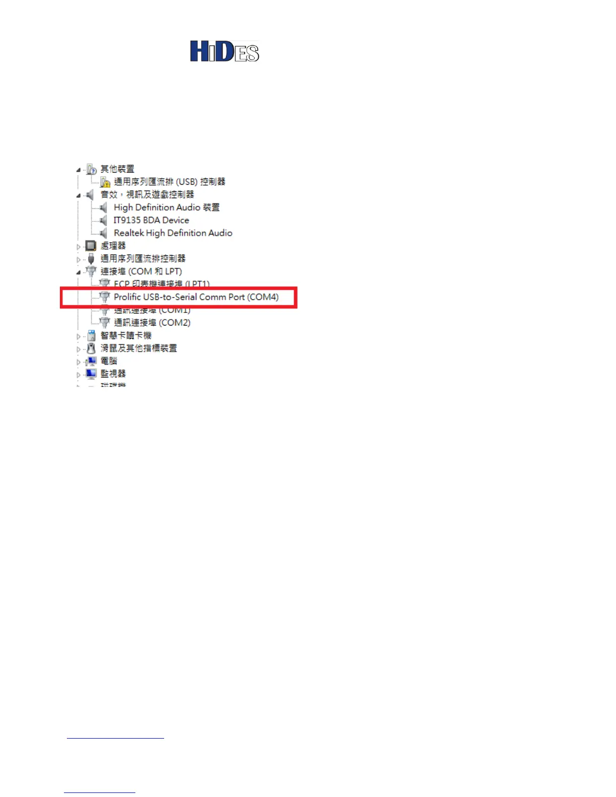 manager. COM4 is assigned in the following example.
