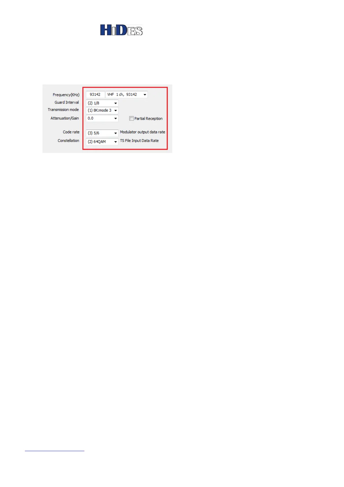 modulator settings. You can change the settings in “Configuration” area.