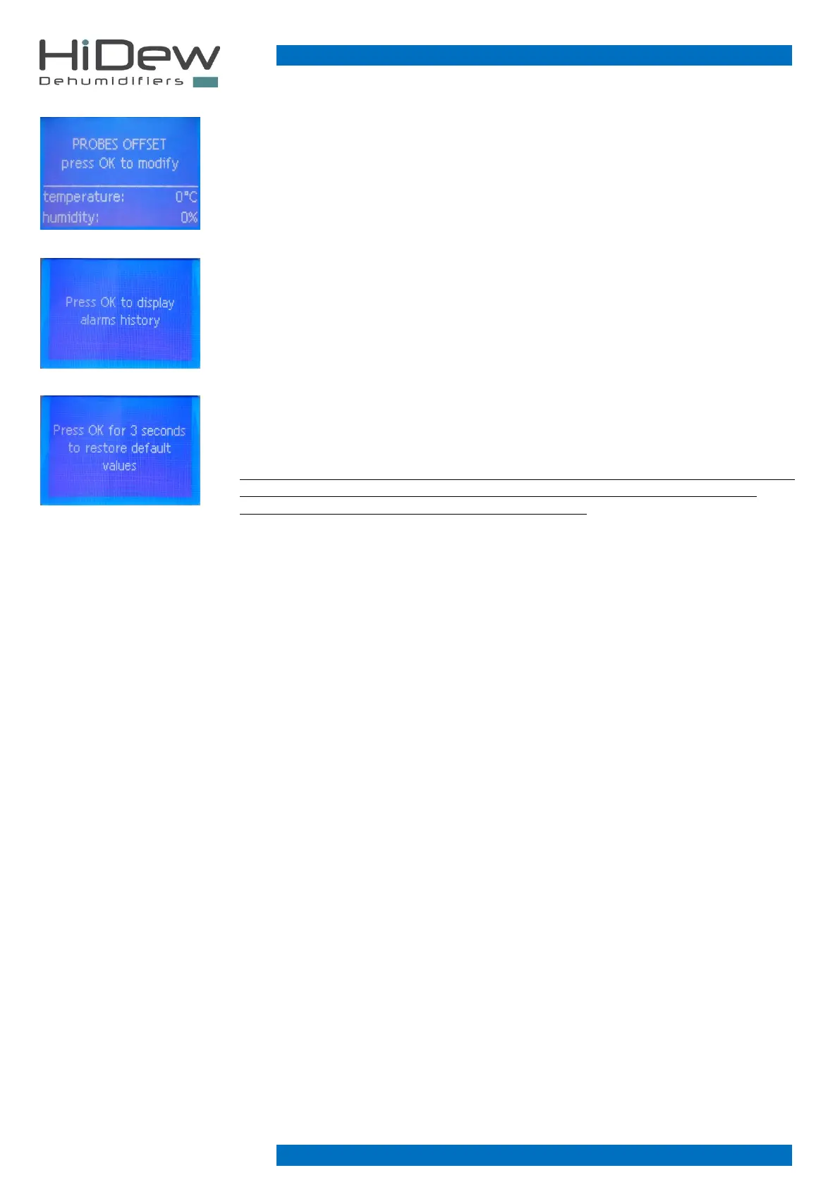 ATTENTION: restoring all the user settings such as the desired temperature and humidity, the set