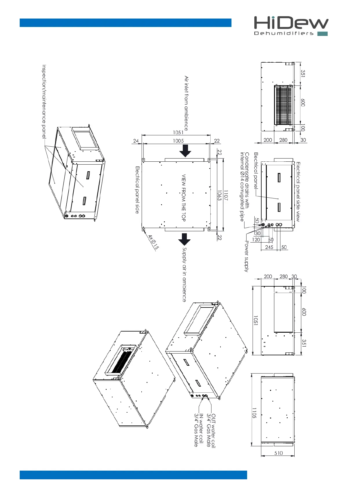 HiDew DDS - Dimensional Drawings: DOS Models (160-230); DOS Models 160-230 Dimensions