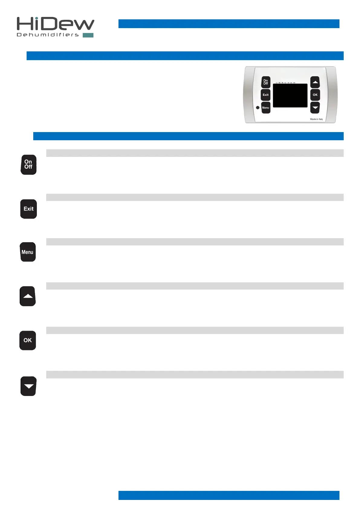 - on the ‘OFF’ and ‘STAND-BY’ page it allows the unit to be turned on