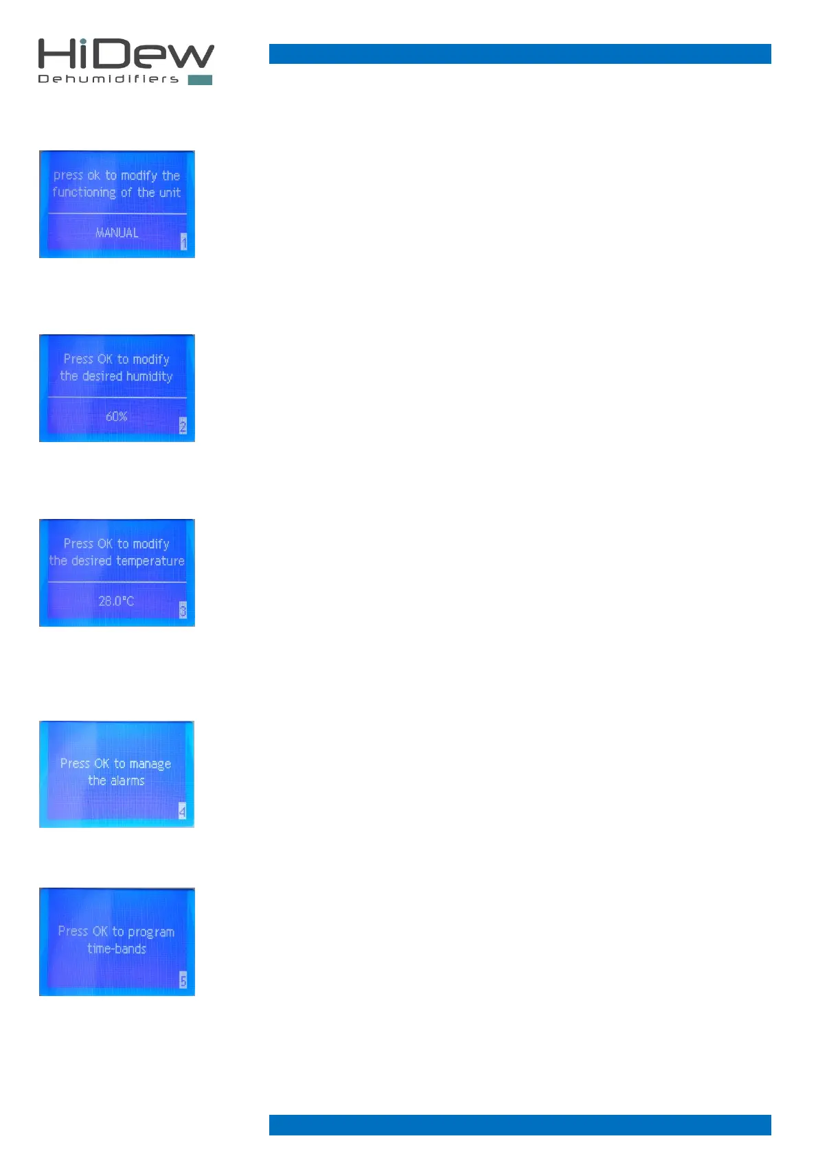 On the left page 1 of the user menu is used to set the operation of the unit: MANUAL or TIME