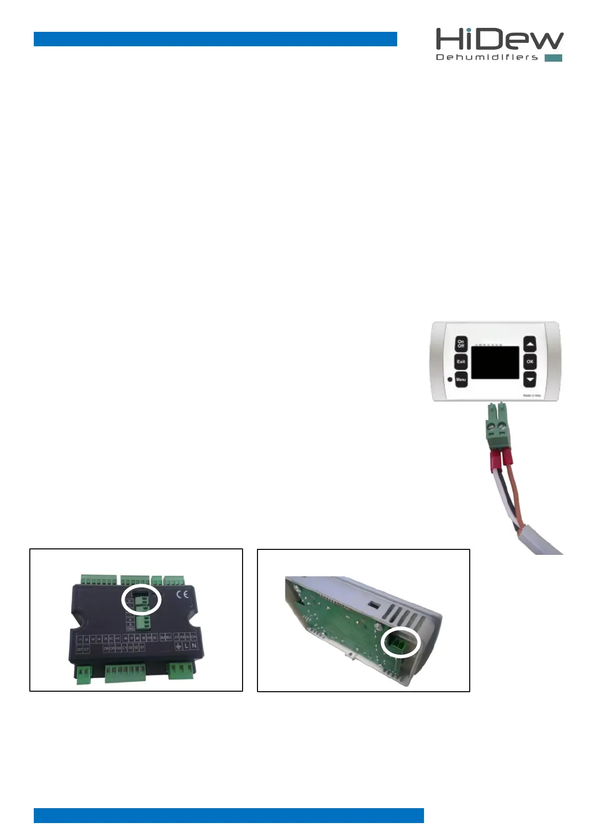 for the activation of dehumidification on 107 - 108 terminals and contact of the control unit for heating activation on the