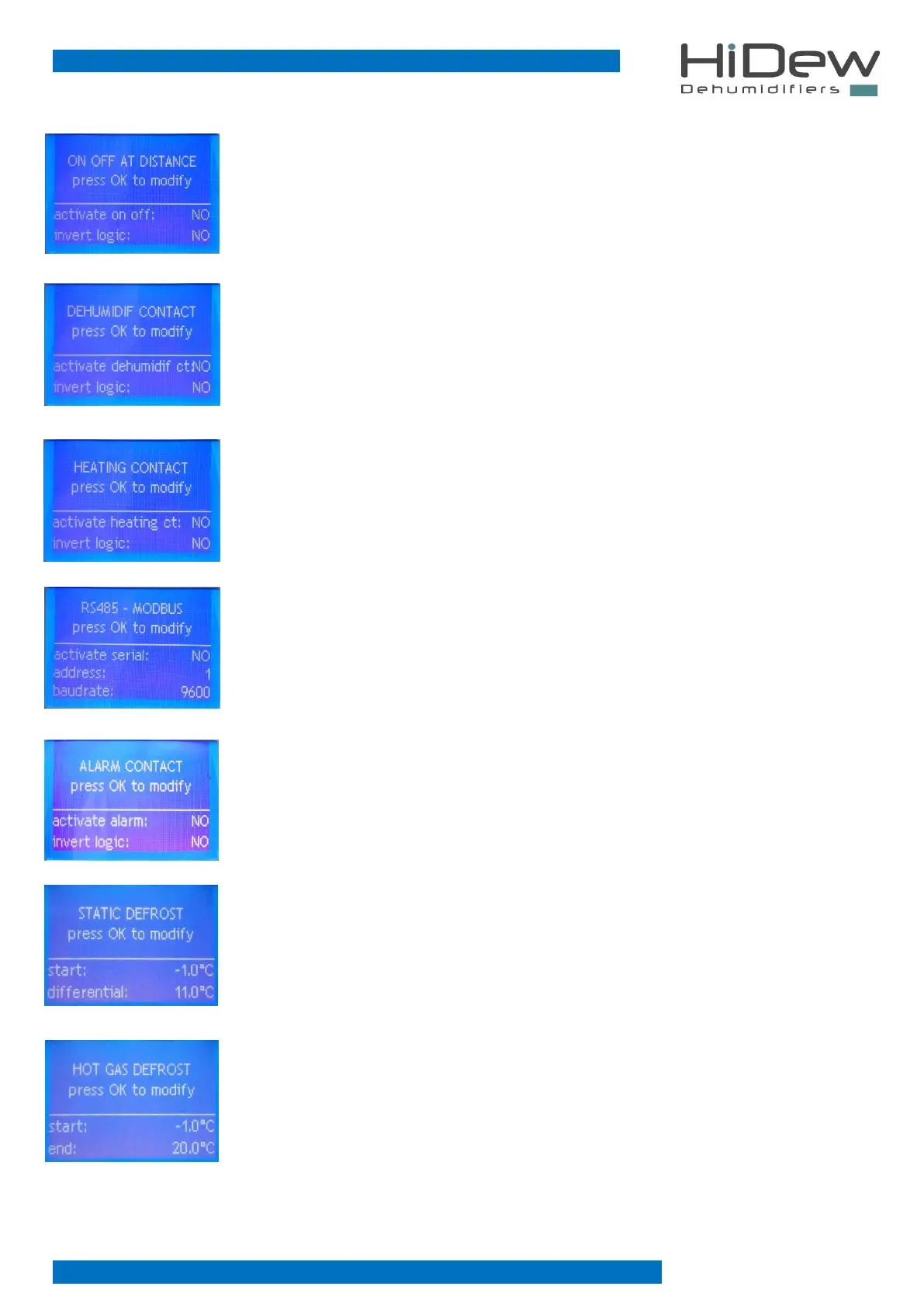 It is used to enable the dehumidification on/off contact and, if necessary, to invert the operating