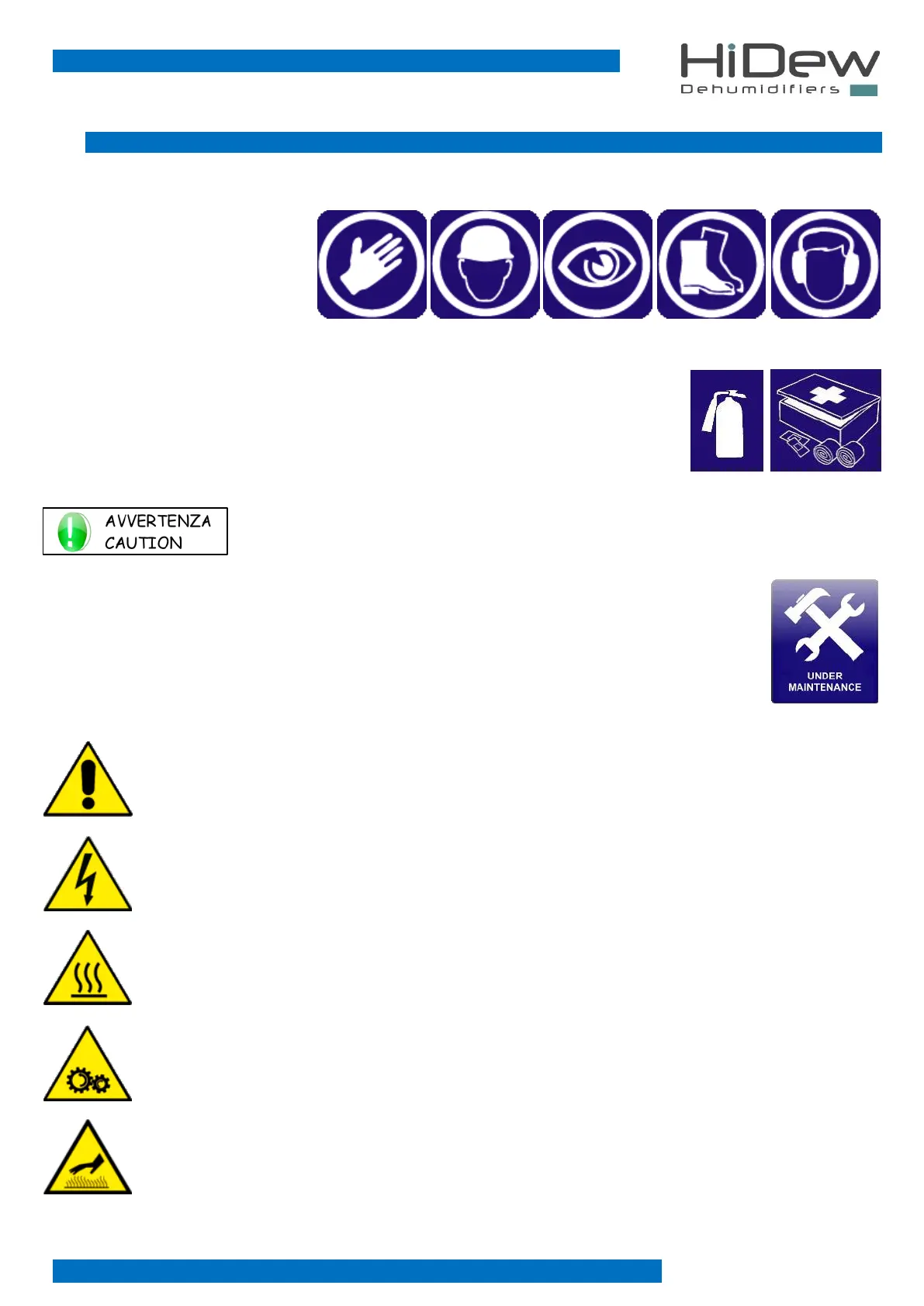 Place a first aid box and a fire extinguisher near the unit.