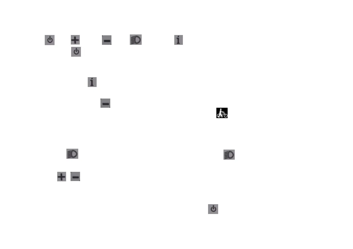 Press / to switch gears of the electric bicycle, thus changing the motor output power.