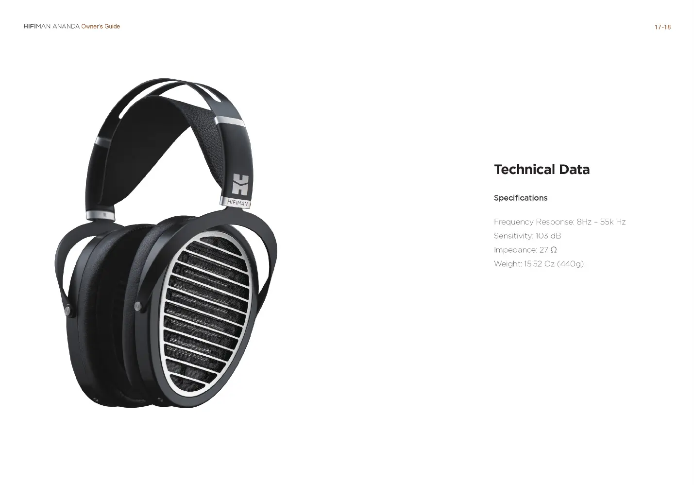 HiFiMAN ANANDA - Technical Data; Specifications