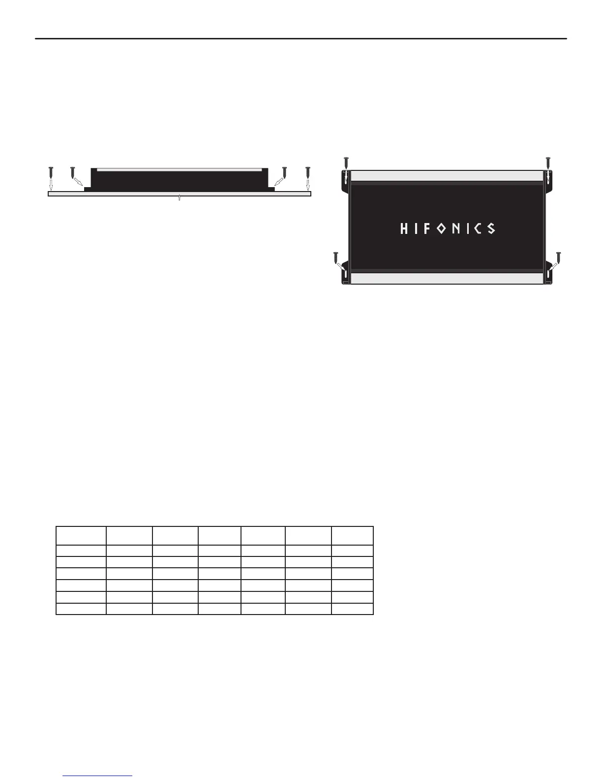 structure using the 4 mounting screws provided. Avoid mounting the amplifier to metal as