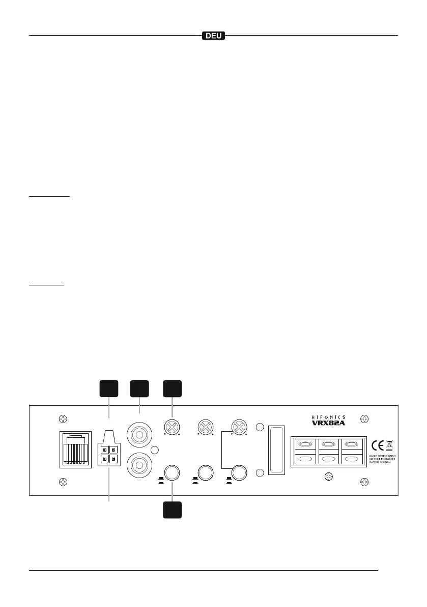 geschaltet wird, schaltet sich der Verstärker ab. Der Anschluss für die Einschaltleitung [ 3 ] ist in diesem Falle
