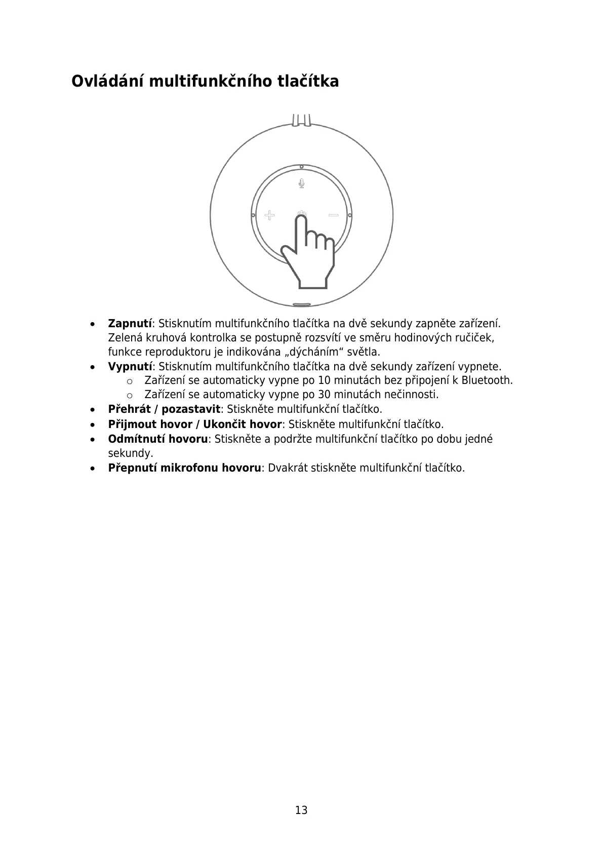 o Zařízení se automaticky vypne po 10 minutách bez připojení k Bluetooth.