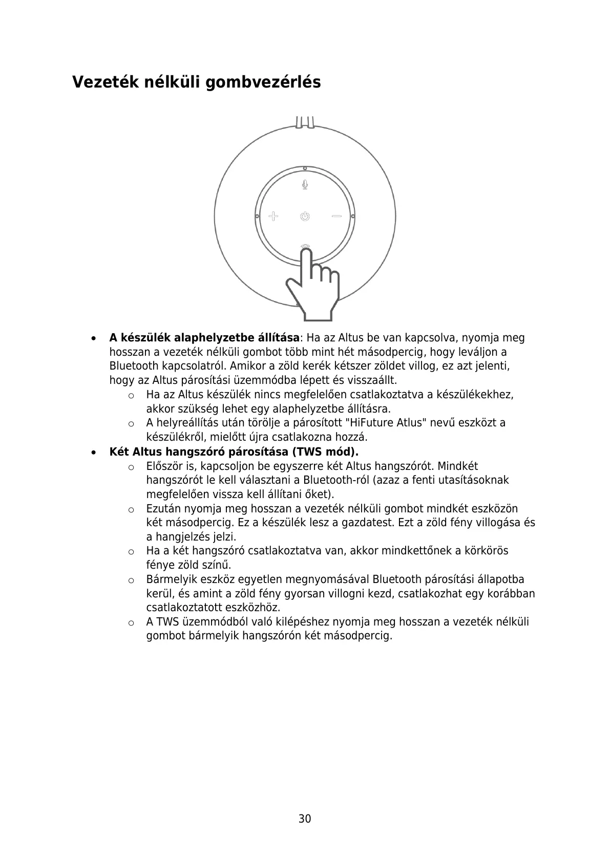 o A TWS üzemmódból való kilépéshez nyomja meg hosszan a vezeték nélküli