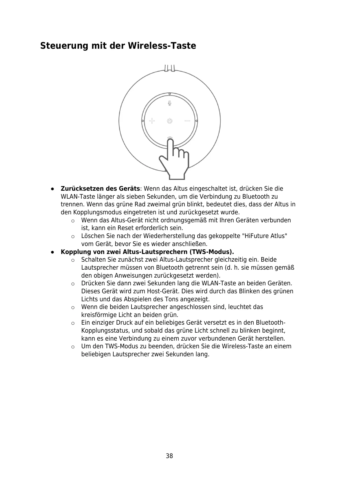 ● Kopplung von zwei Altus-Lautsprechern (TWS-Modus).