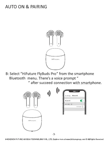 HiFuture Flybuds Pro - AUTO ON & PAIRING; Initial Setup; Bluetooth Connection