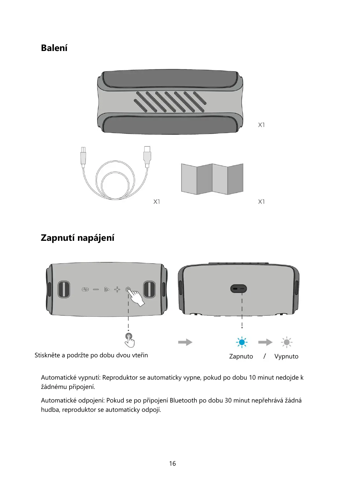 Automatické vypnutí: Reproduktor se automaticky vypne, pokud po dobu 10 minut nedojde k