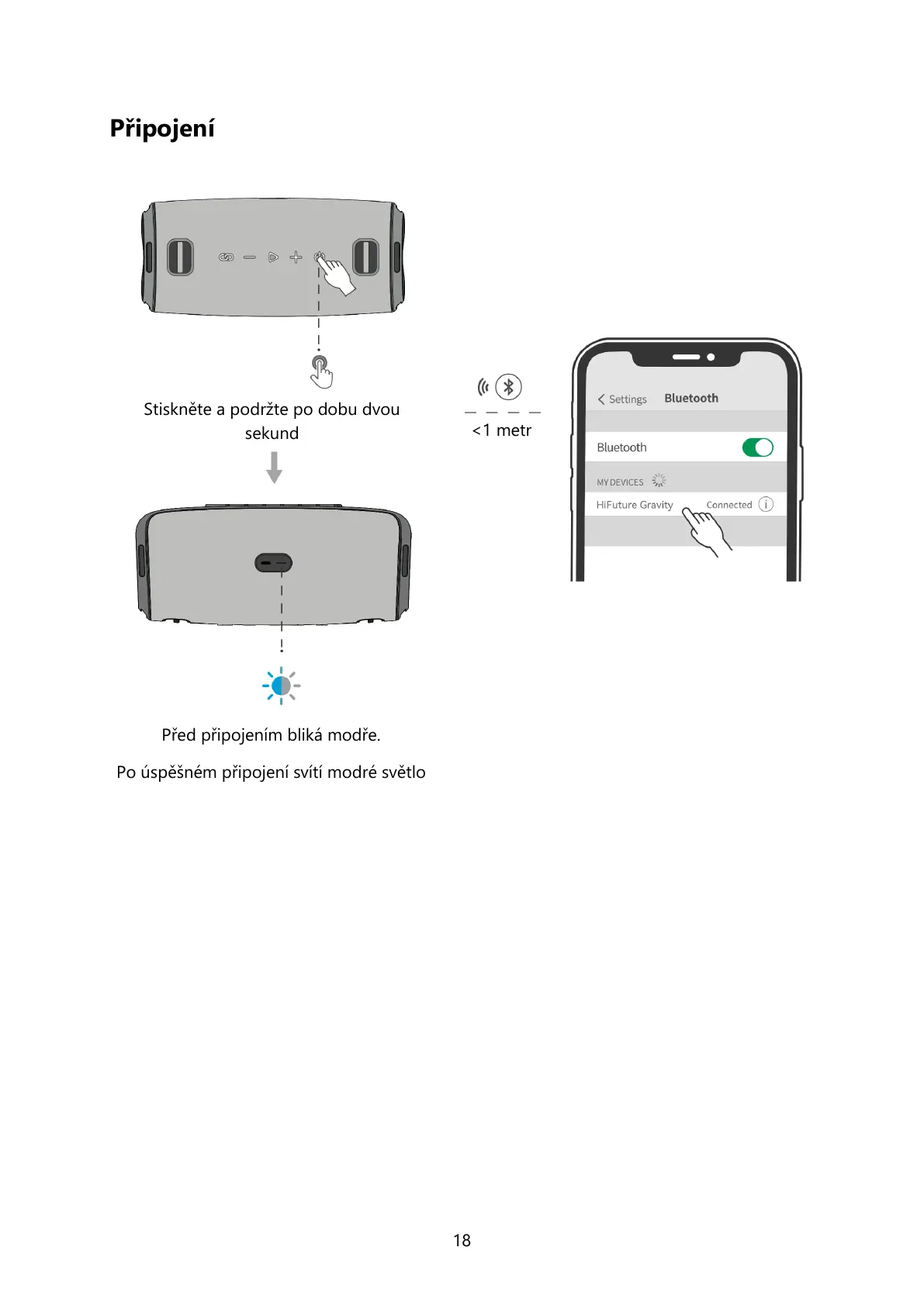 Před připojem bliká modře.