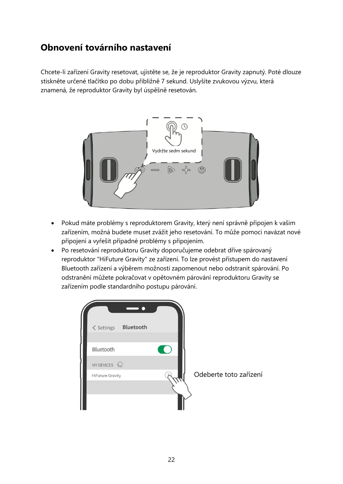 Po resetování reproduktoru Gravity doporučujeme odebrat dříve spárovaný