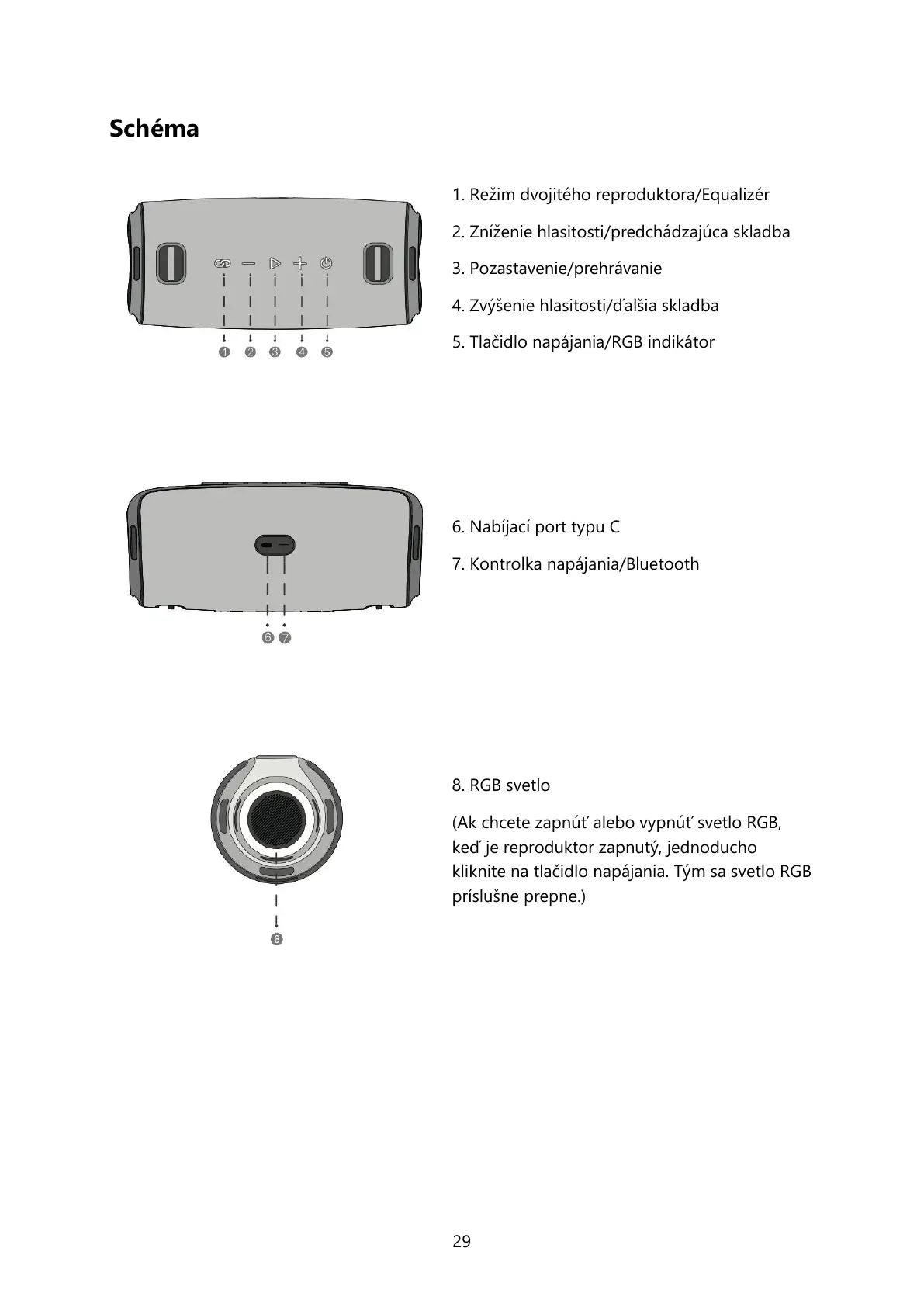 7. Kontrolka napájania/Bluetooth
