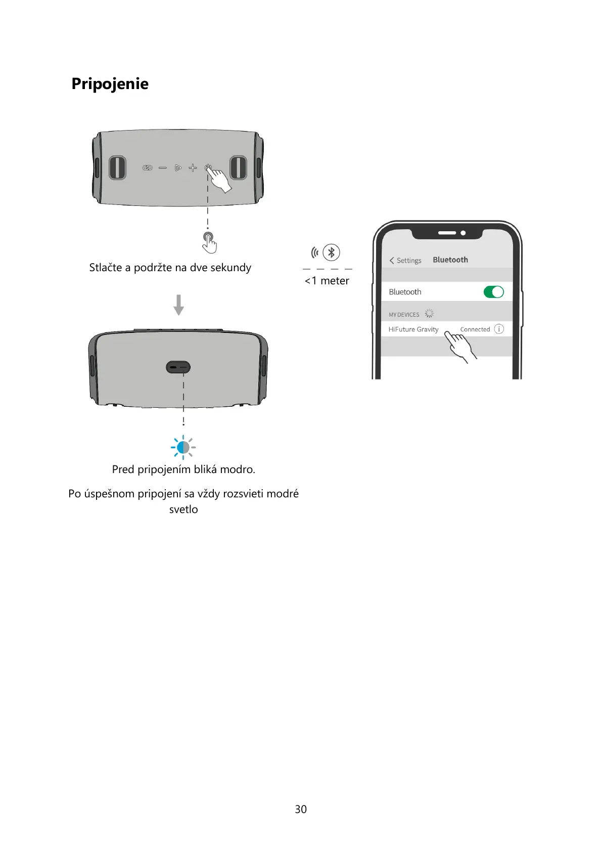 Pred pripojem bliká modro.