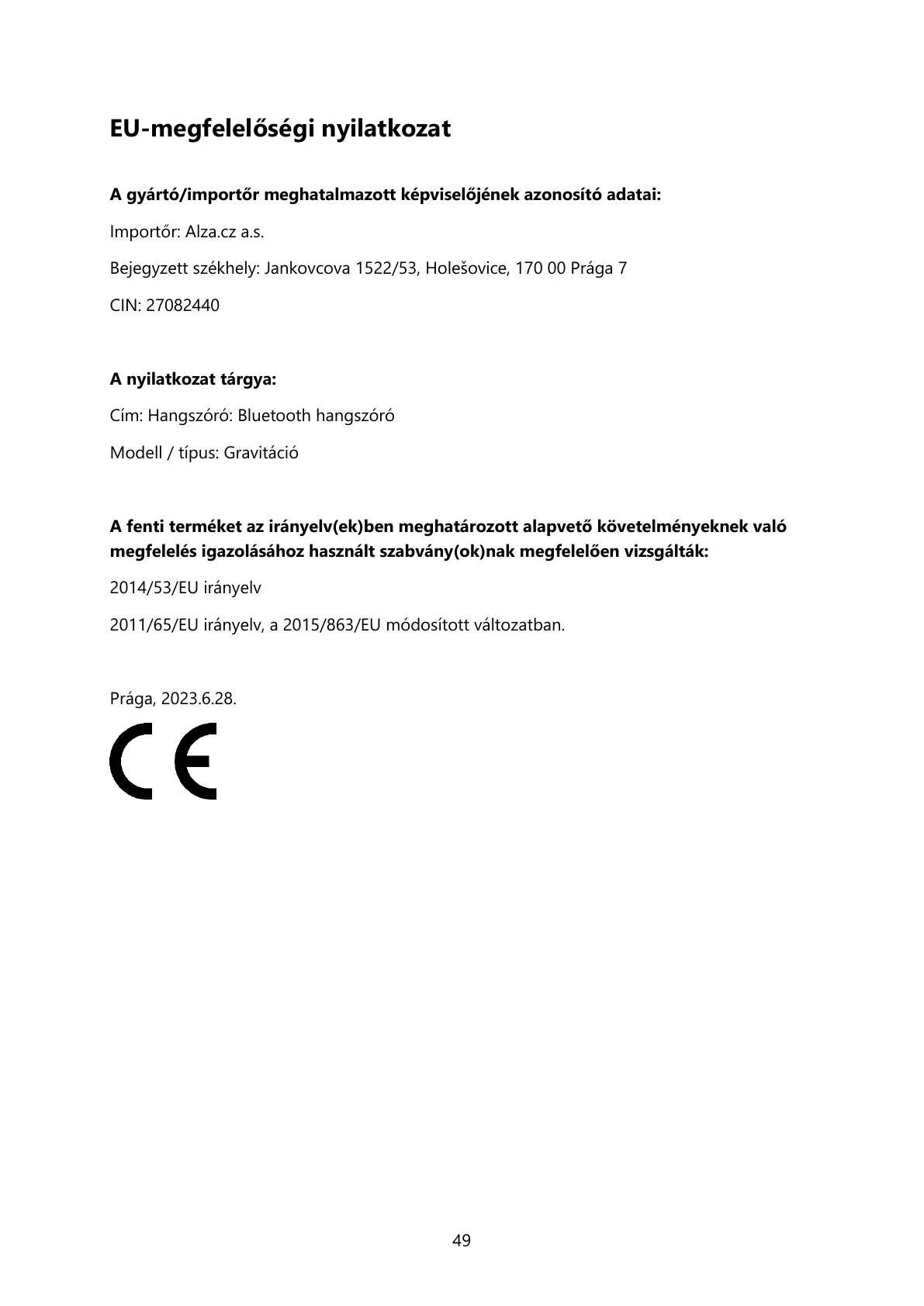 EU-megfelelőségi nyilatkozat